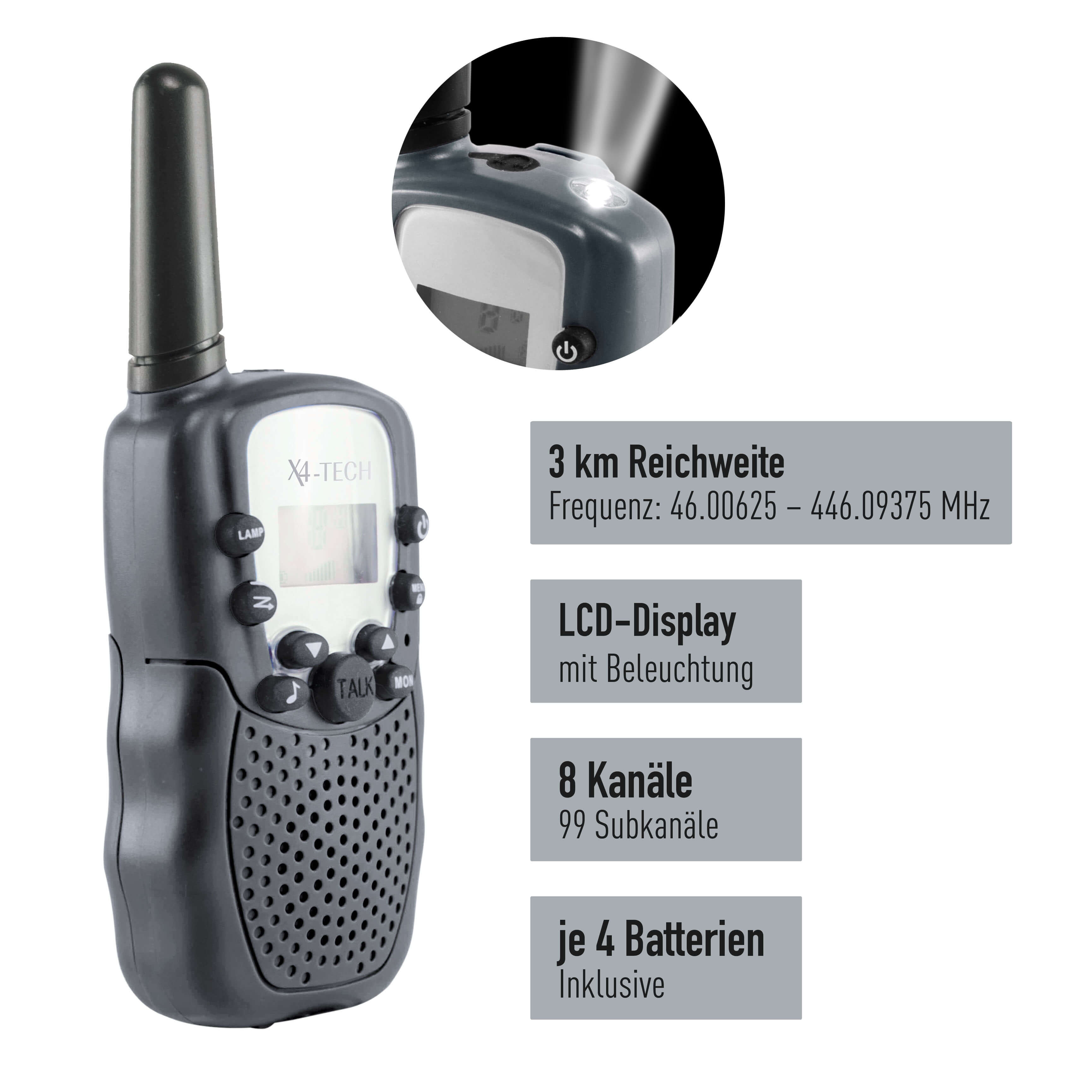 Produktinformationen "X4-TECH Walkie-Talkie mit 3 km Reichweite, 8 Kanälen, LCD-Display, LED-Licht und Kopfhöreranschluss perfekt für Outdoor-Abenteuer, schwarz"