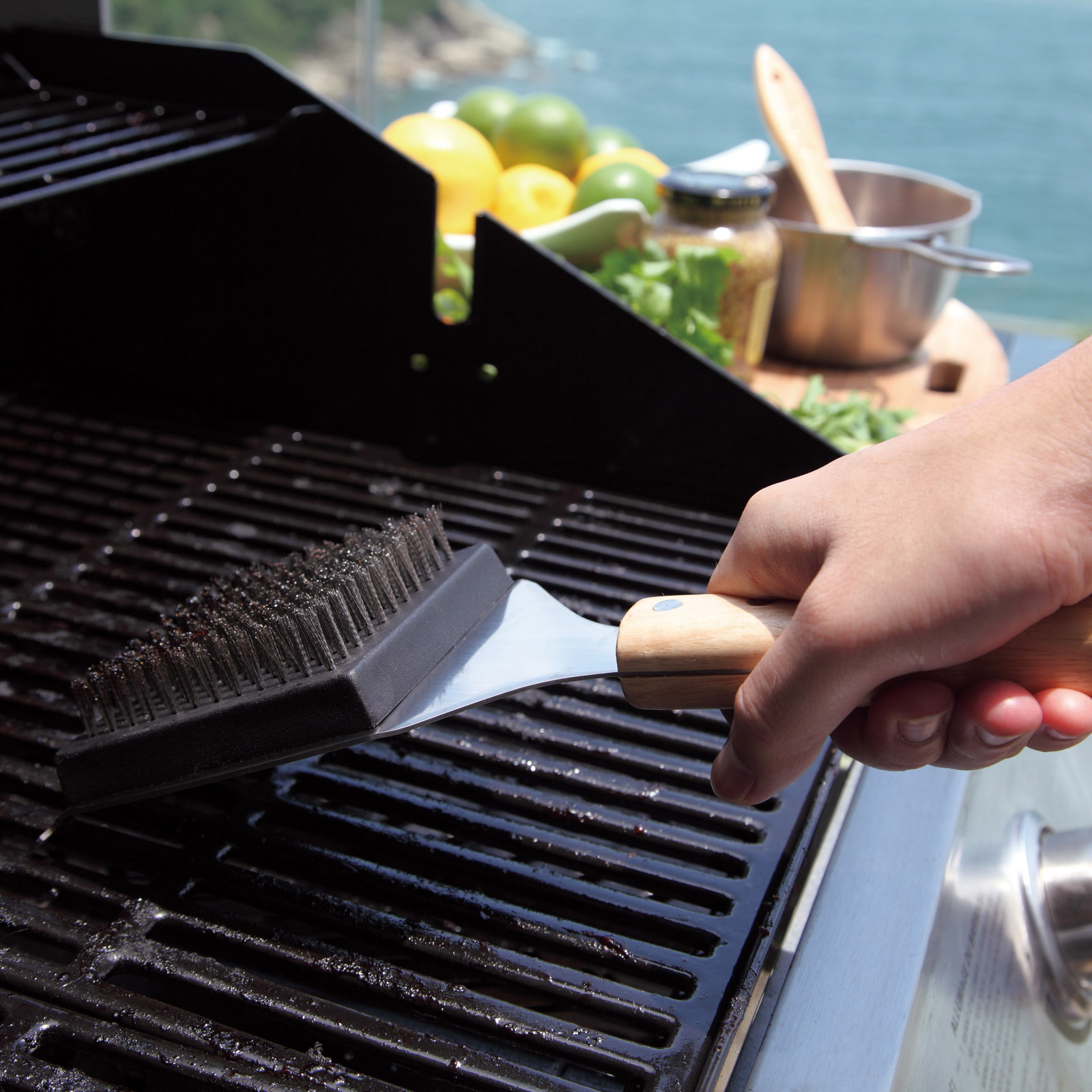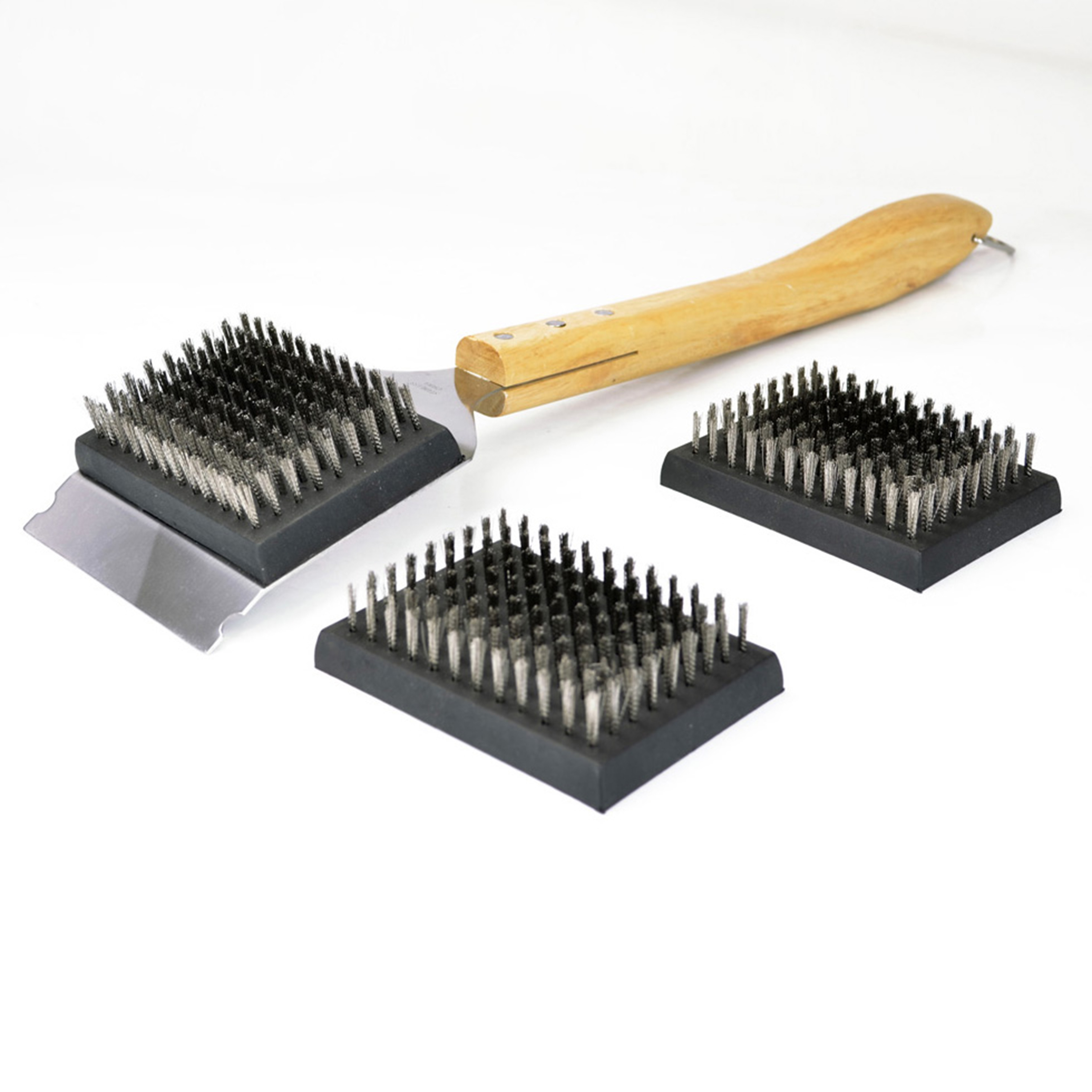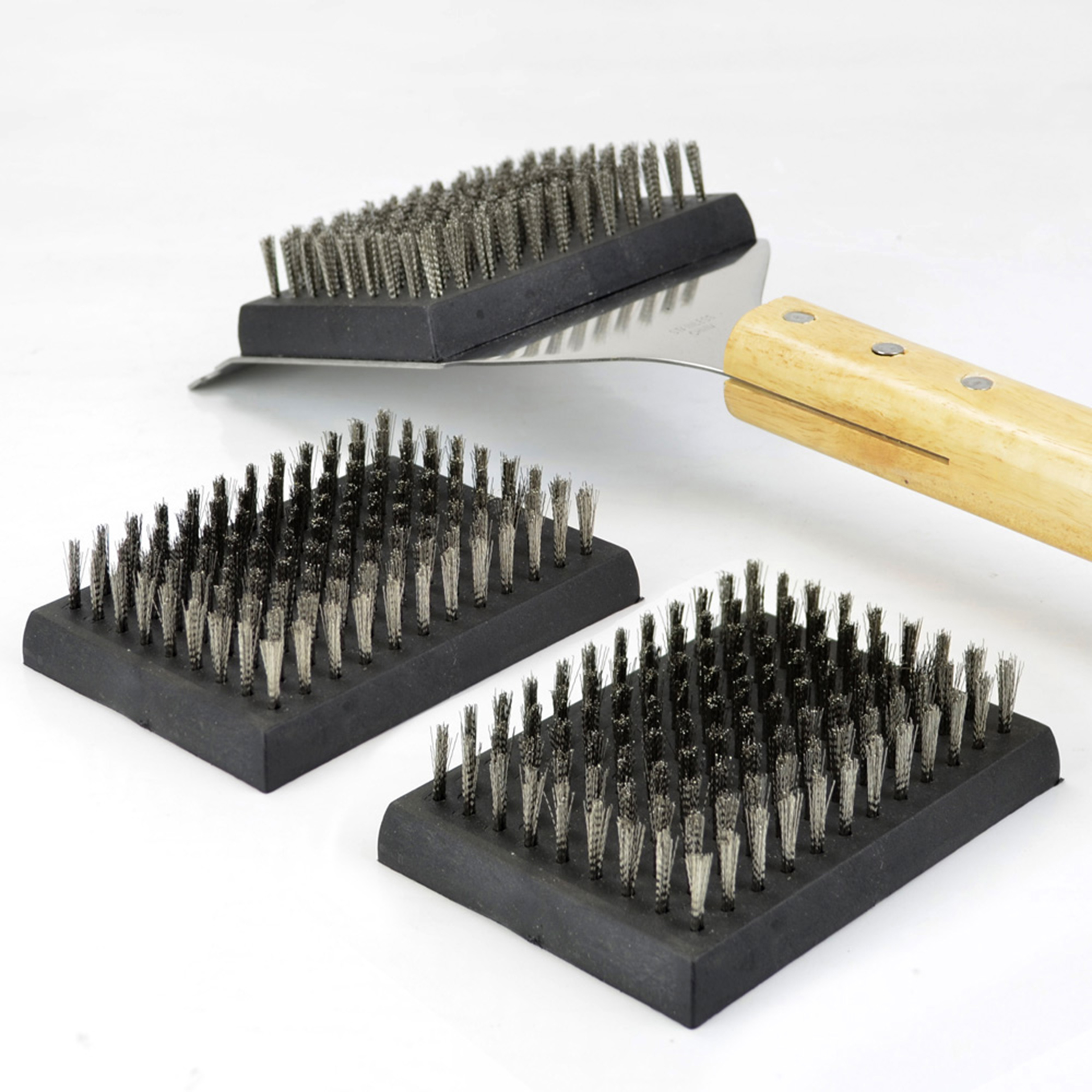 Produktinformationen "Jim Beam BBQ Grillbürste mit zwei Ersatz Bürstenköpfen, Bürstenaufsatz ca. 9x10 cm, Parawoodholz-Handgriff, mit Spachtel für den Grill"