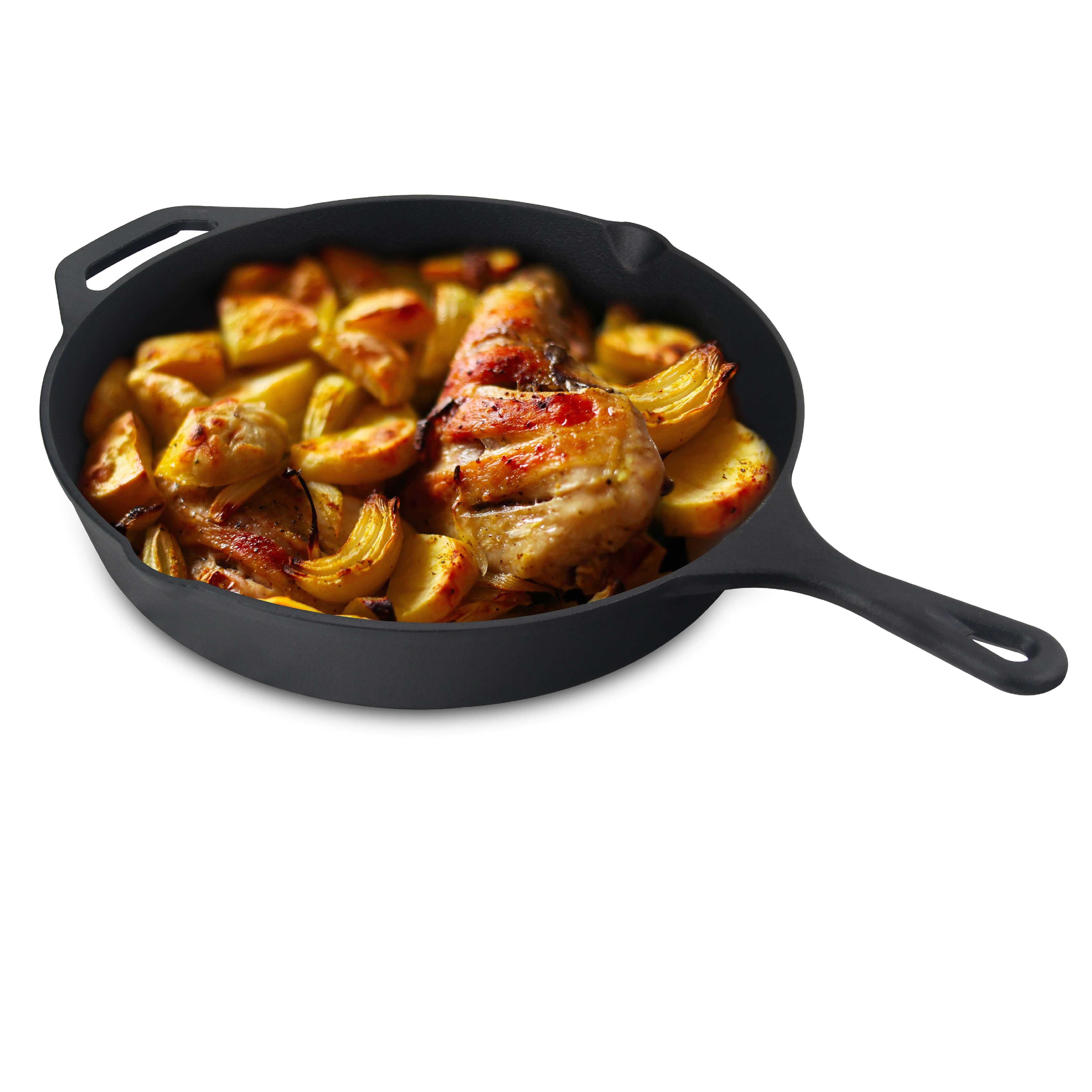 Mit einem Durchmesser von 26 cm und einem praktischen Handgriff ist diese Brat- und Grillpfanne ideal für den Einsatz auf dem Grill oder im Ofen. Durch das langlebige Gusseisen wird eine ideale Wärmespeicherung und Wärmeverteilung gewährleistet. Zudem verfügt die Bratpfanne über 2 Ausgießer für ein müheloses Abgießen von Bratensaft oder Fett.