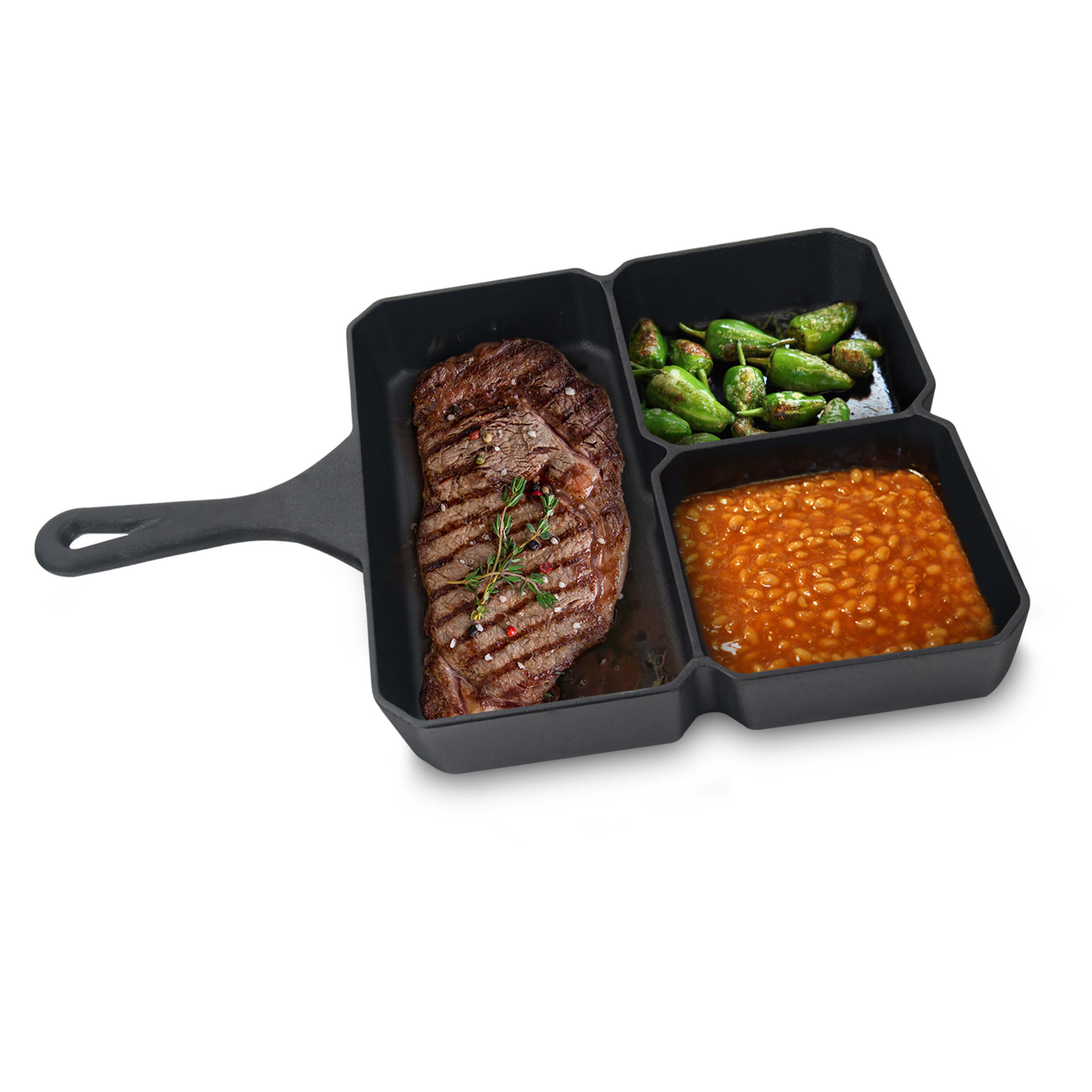 - Sehr robuste Grillpfanne mit 3 Fächer für gleichzeitiges Erwärmen von verschiedenen Speisen
