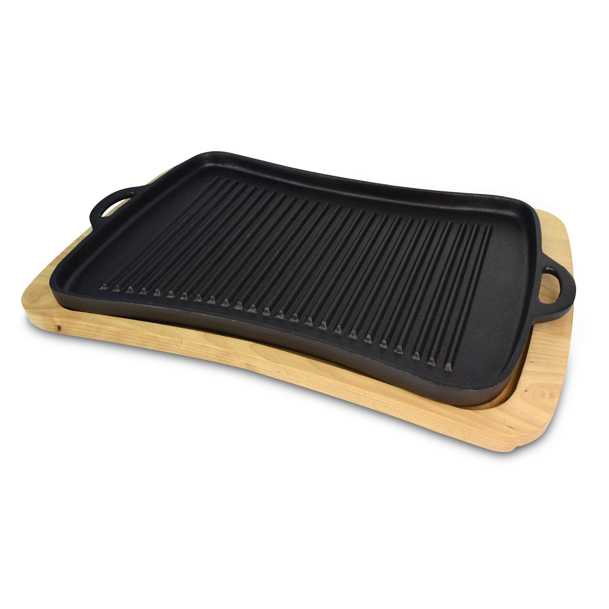 Die gleichmäßige Wärmeverteilung und lange Wärmespeicherung des gusseisernen Grillaufsatzes sorgen dafür, dass Ihr Grillgut besonders lange warmgehalten wird. Direkt auf dem mitgelieferten Holzuntersetzer serviert, wird das Grillen zu einem besonderen Erlebnis.