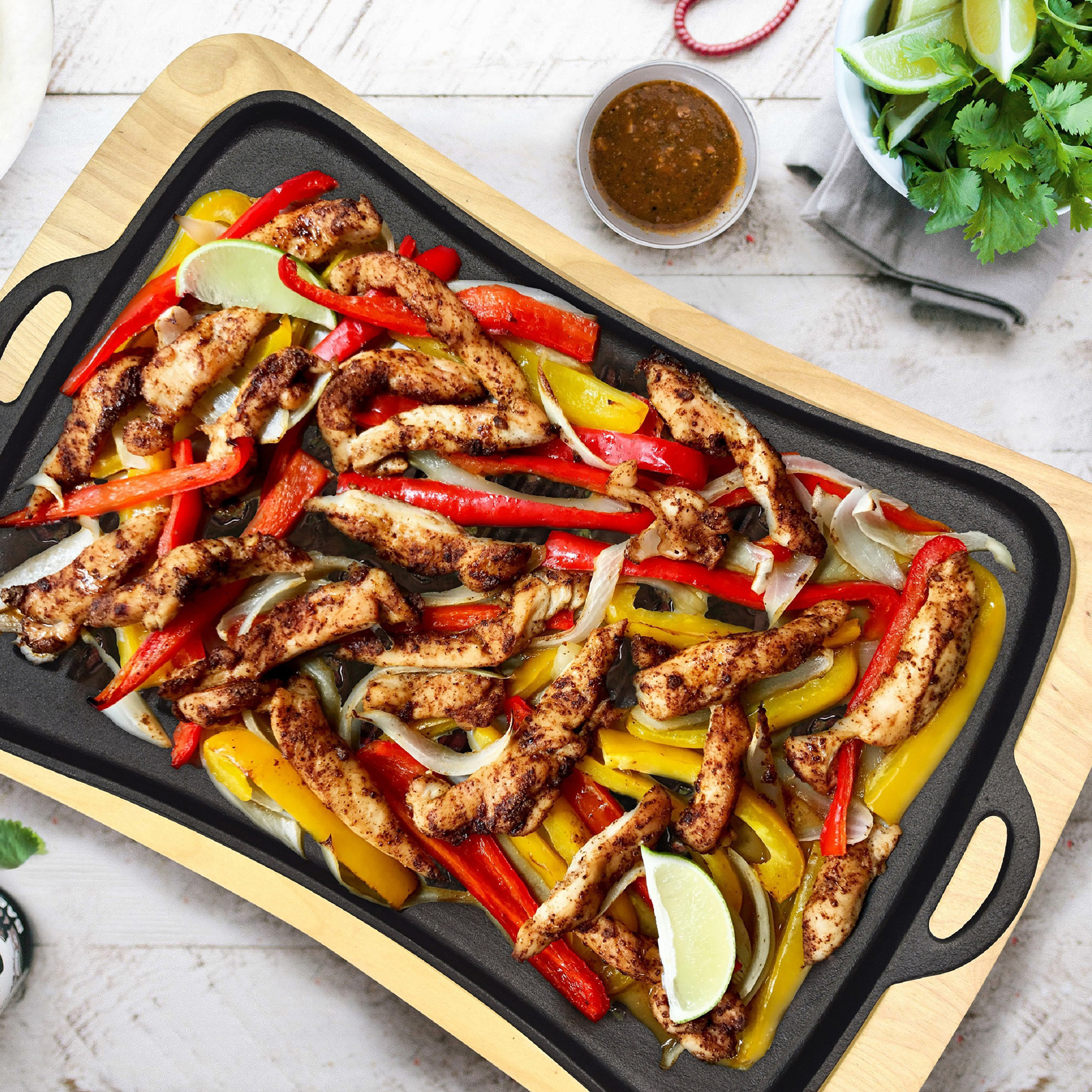 Die Grillplatte eignet sich auch hervorragend für die Zubereitung von Fajitas und anderen Grillgerichten. Die Fläche des Grillaufsatzes beträgt ca. 34 x 24 cm und die Fläche des Holzuntersatzes ist 41 x 27 cm. Mit der Jim Beam Grillplatte aus Gusseisen wird Ihr nächstes Grillfest zu einem vollen Erfolg!