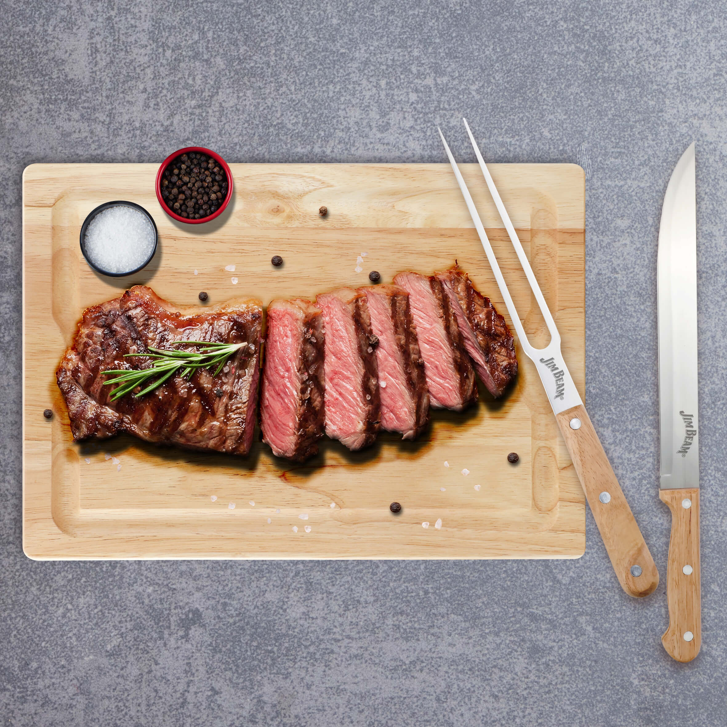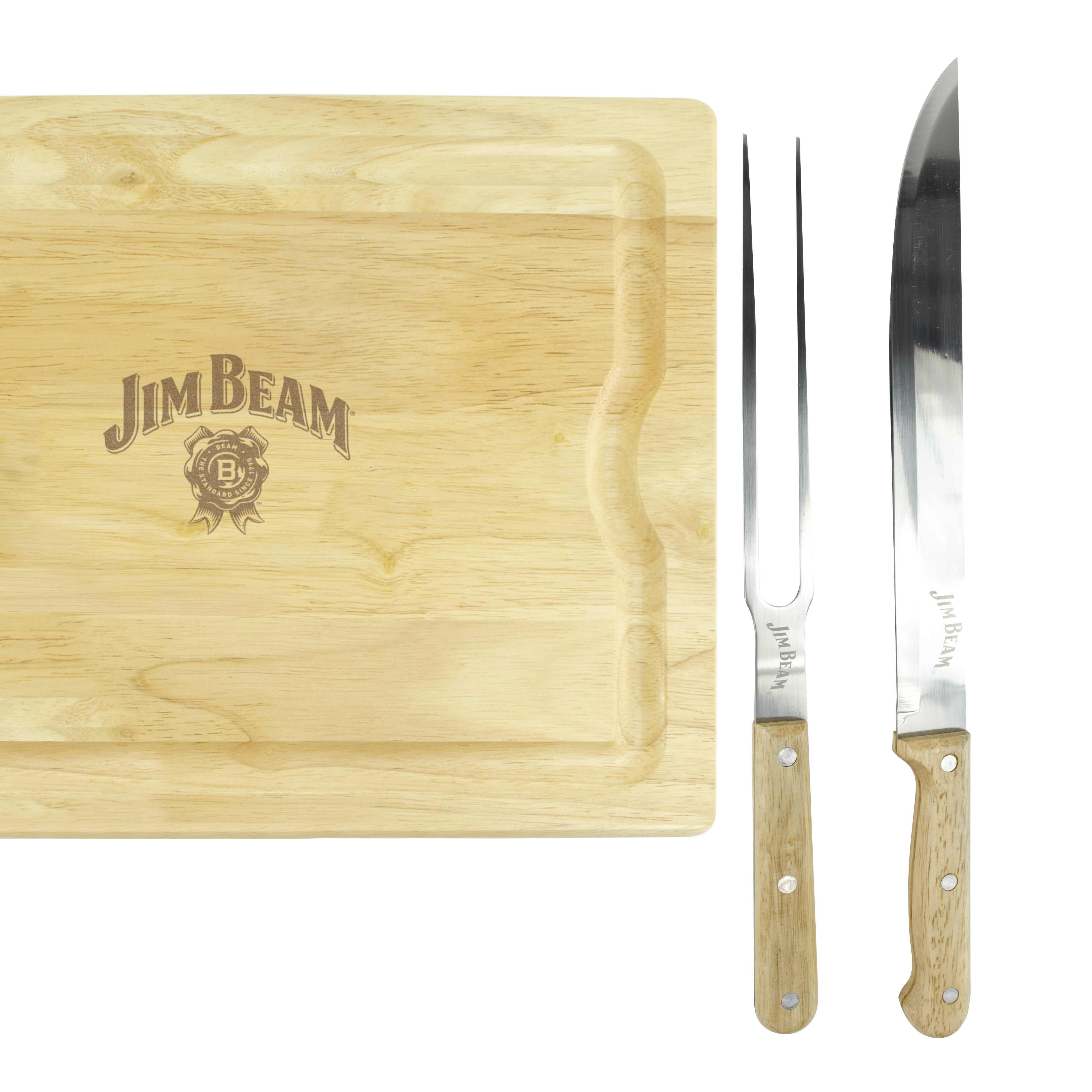 Jim Beam XL Schneidebrett mit Tranchiermesser und Fleischgabel JB0237