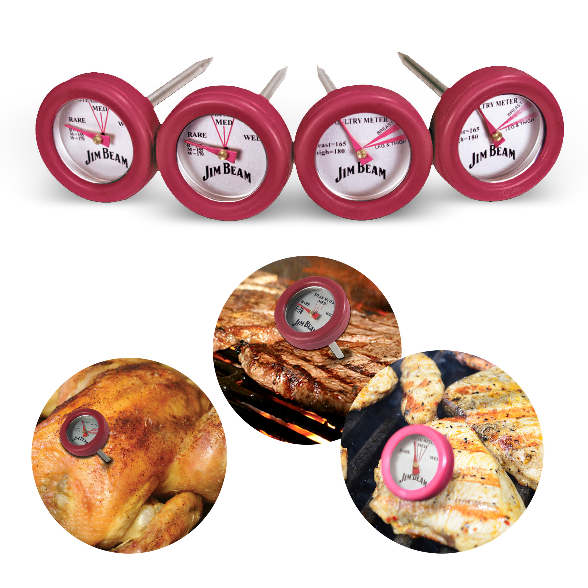 Produktinformationen "Jim Beam Fleischthermometer, für Geflügel und Steaks, mit hitzebeständigem Silikon, analog, BBQ Zubehör für die Küche"