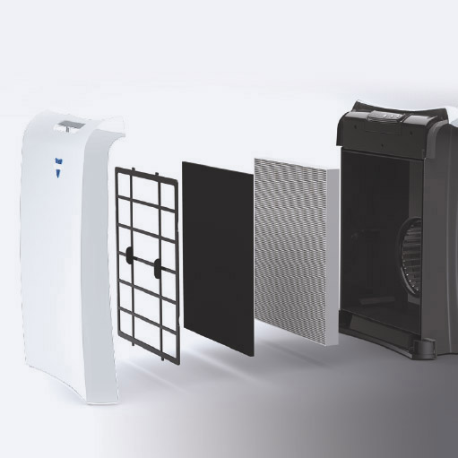 - Verwendet eine Kombination aus Kohlefilter und echte HEPA14-Filter.