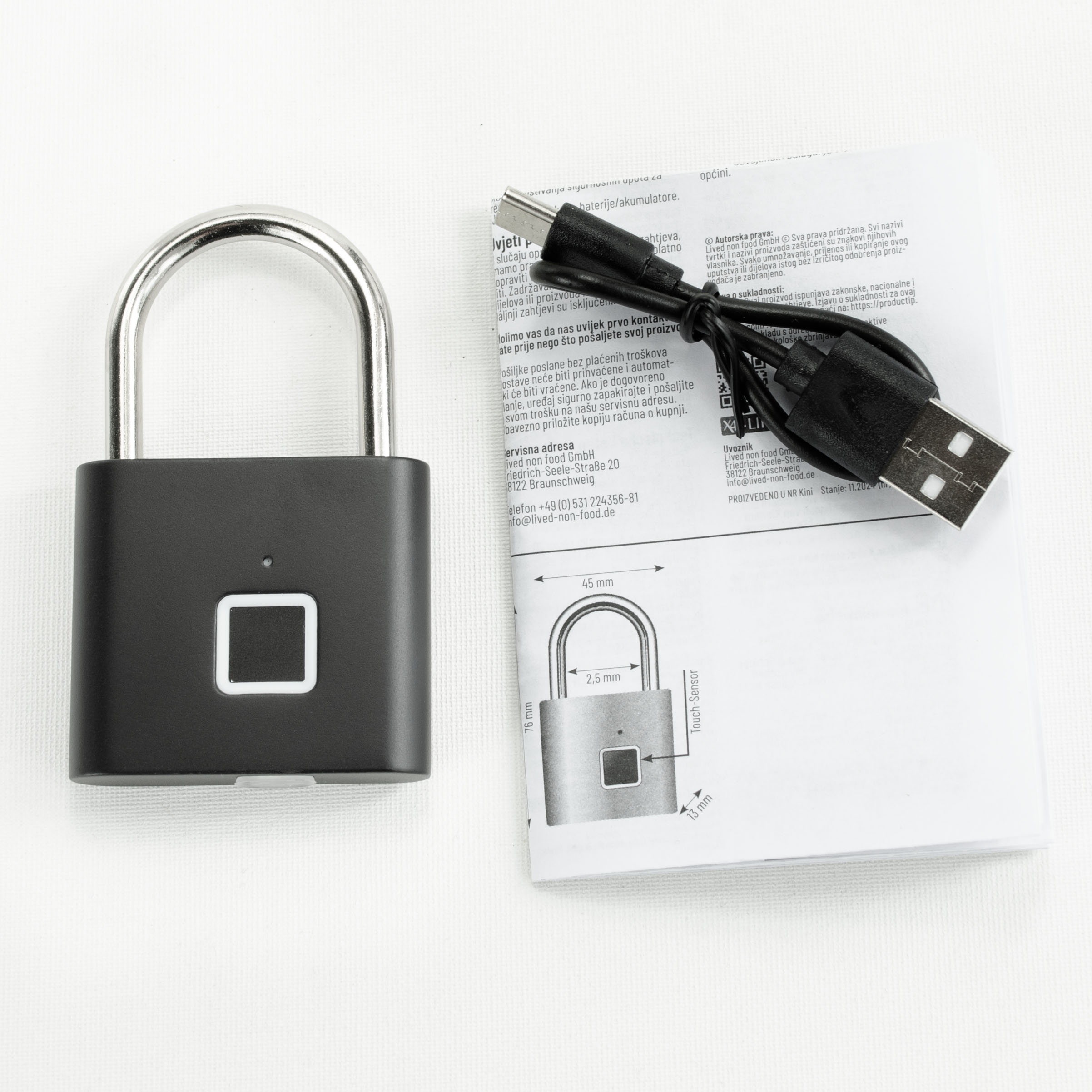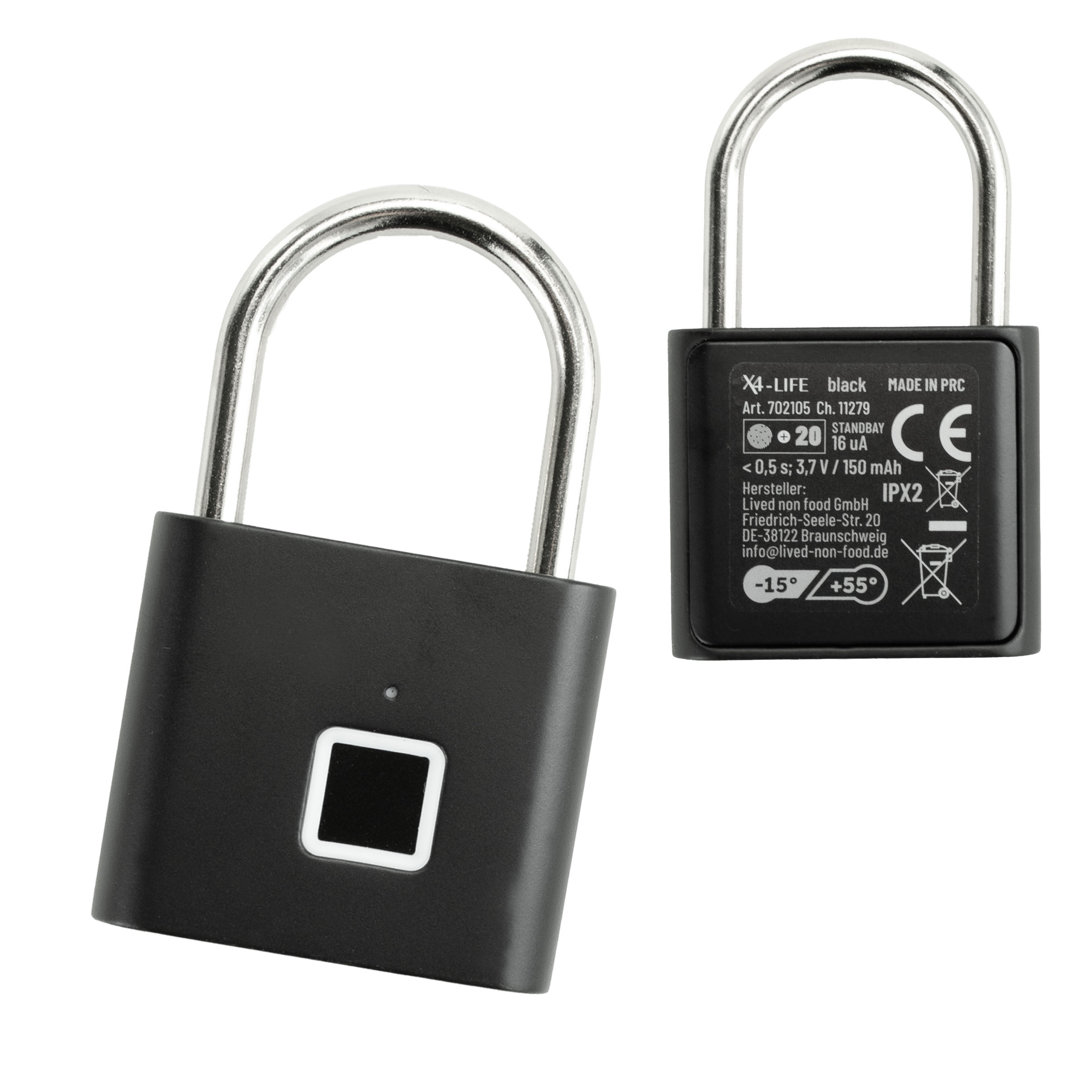 Produktinformationen "X4-LIFE Fingerabdruck-Vorhängeschloss-schwarz"