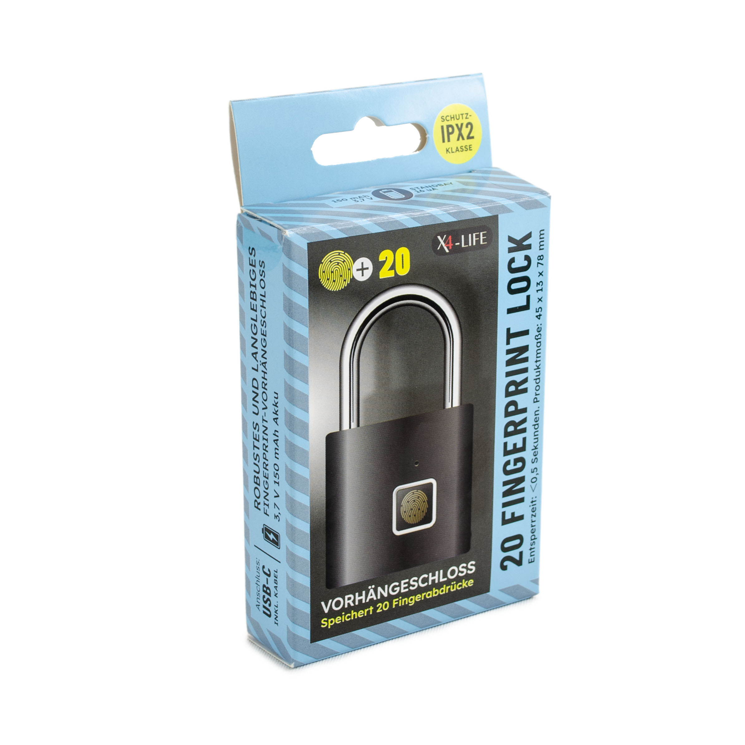 X4-LIFE Fingerabdruck-Vorhängeschloss