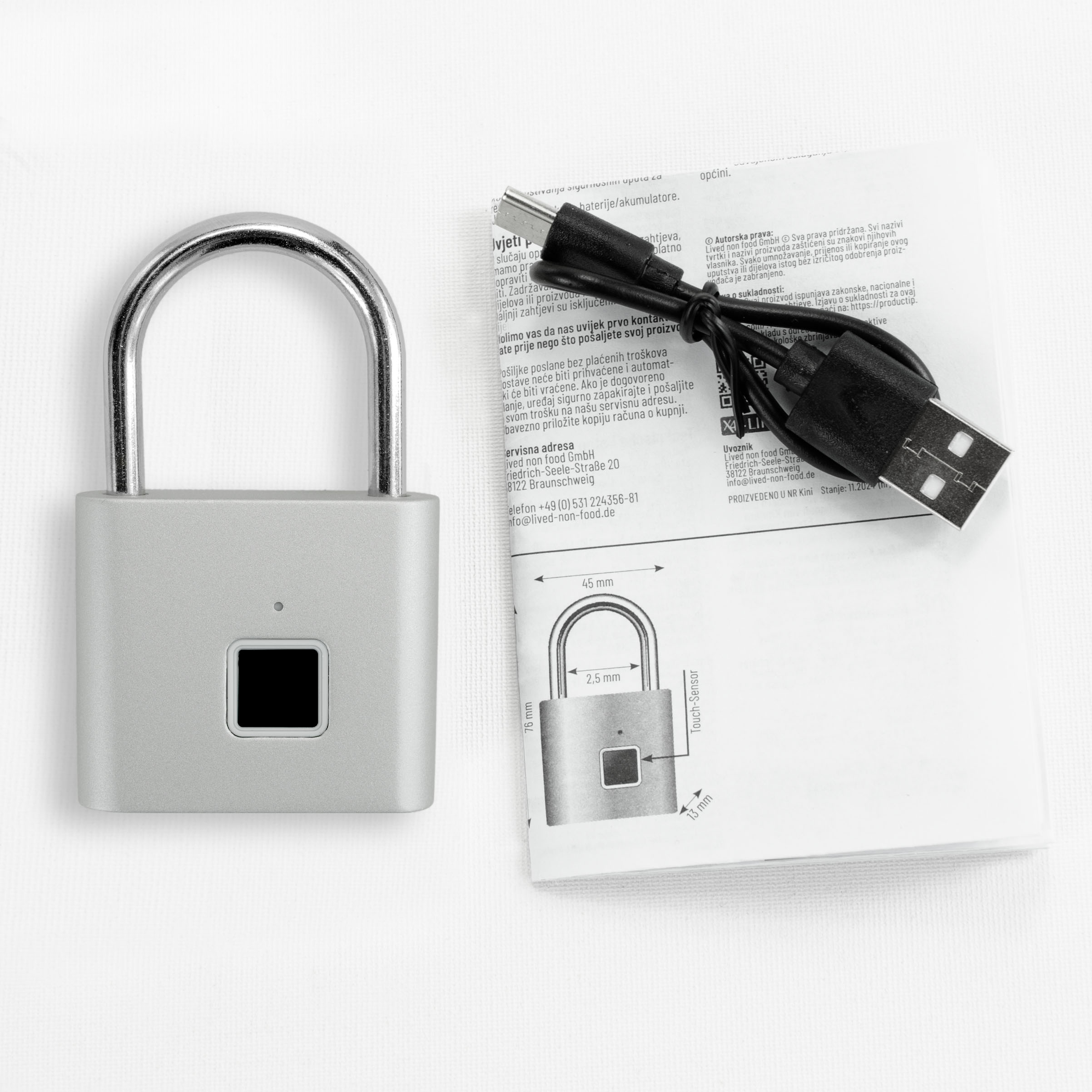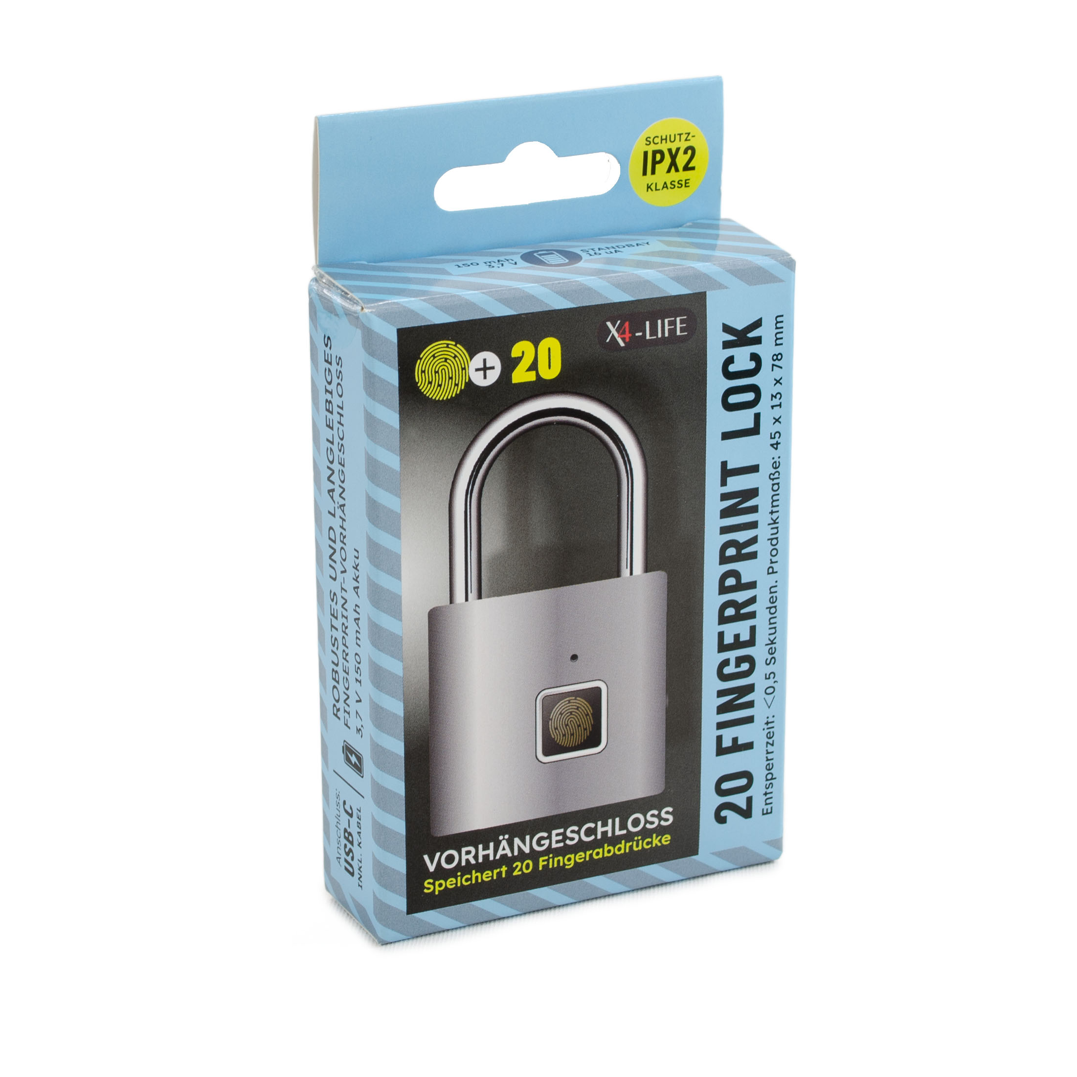 Produktinformationen "X4-LIFE Fingerabdruck-Vorhängeschloss"