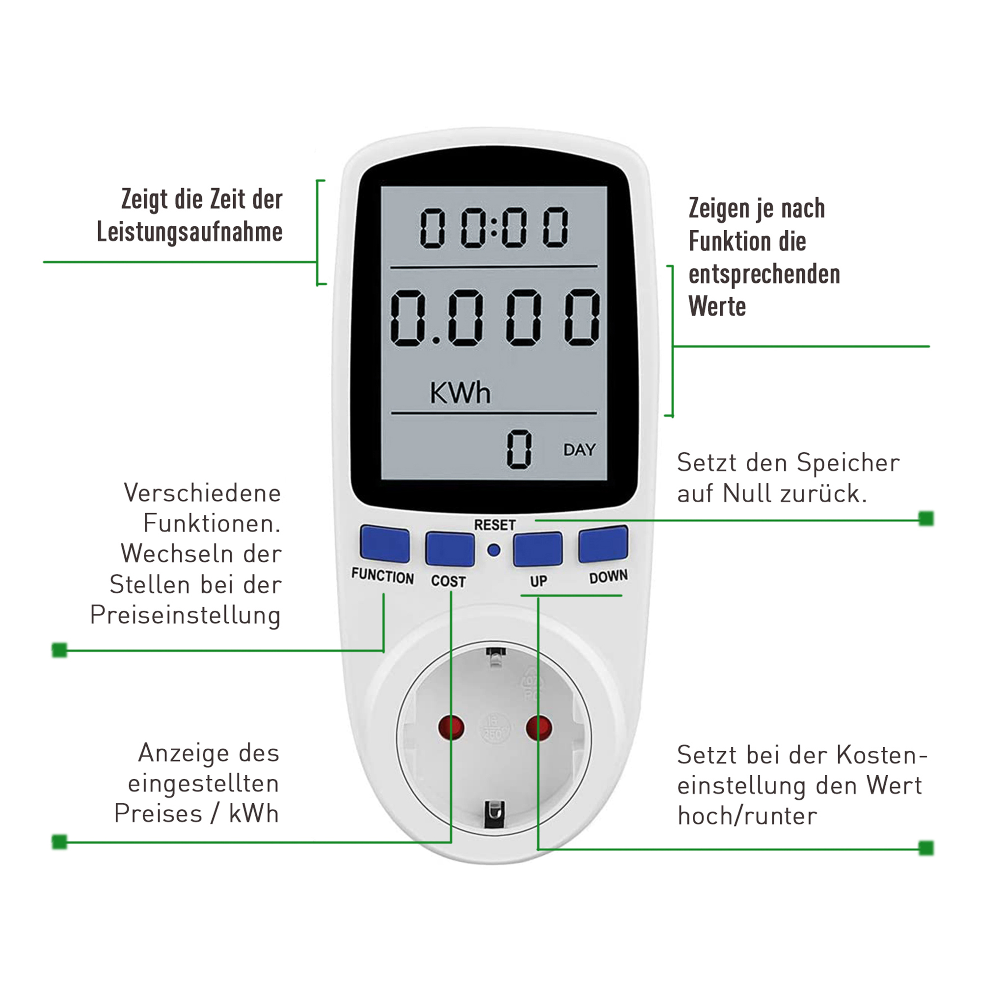 Mit diesem innovativen Gerät können Sie den Energieverbrauch Ihrer Elektrogeräte präzise messen und die anfallenden Kosten direkt ablesen. Sparen Sie effektiv Energie und bares Geld!
