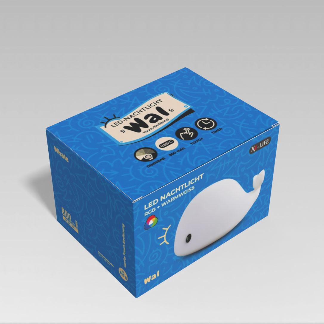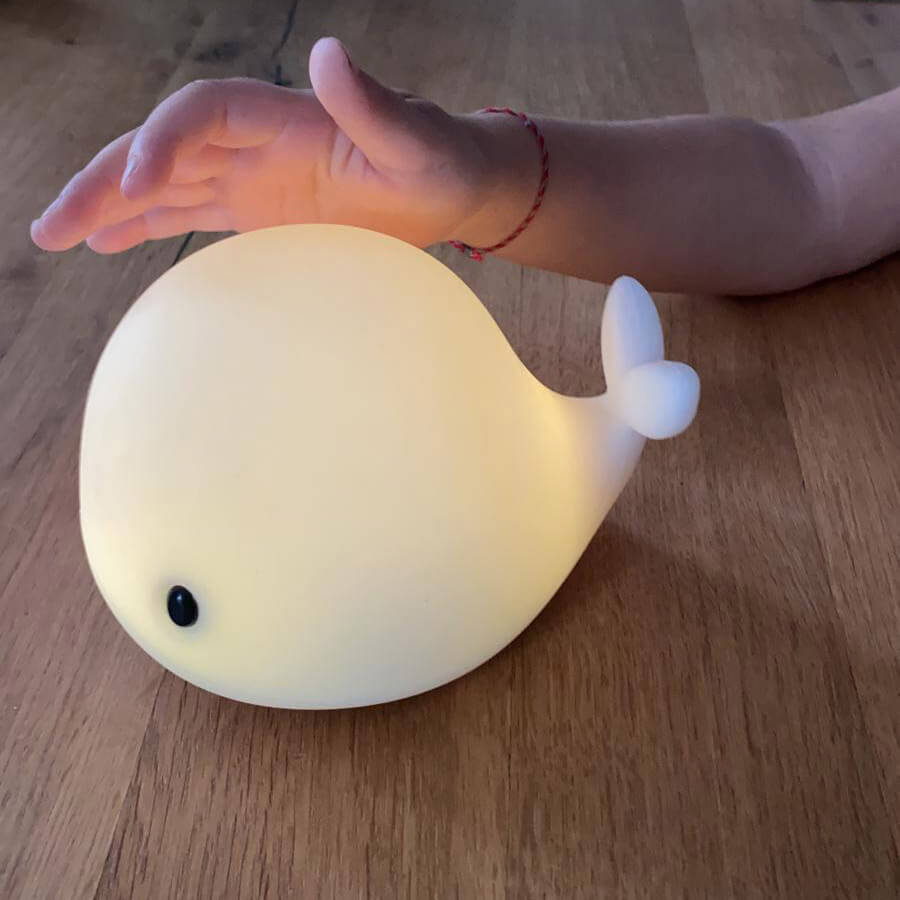 Süße Träume mit dem LED Nachtlicht Wal mit Touch-Steuerung. Der 15 x 11 x 8 cm große Wal ist ein niedliches LED-Nachtlicht. Zur Schlafenszeit taucht er das Kinderzimmer in sanftes Licht und nimmt den Kleinen die Angst vor der Dunkelheit. Wenn das Kind zufrieden schläft, können auch die Eltern beruhigt zu Bett gehen.